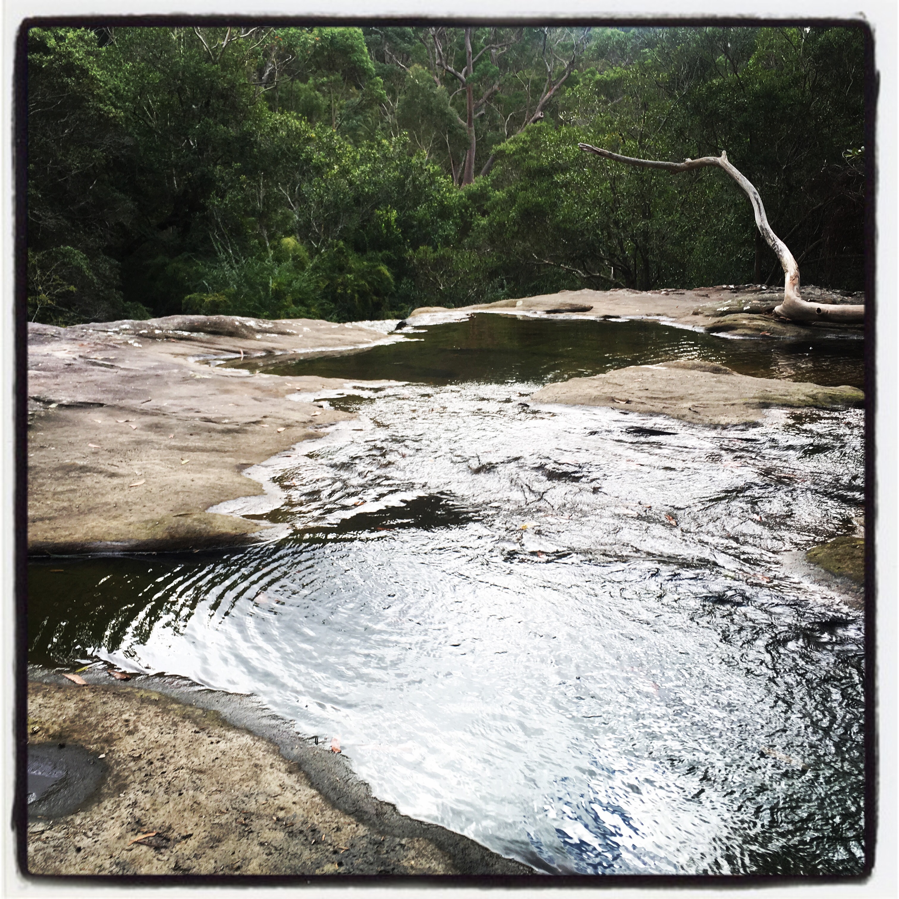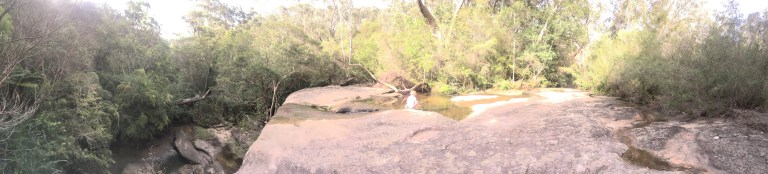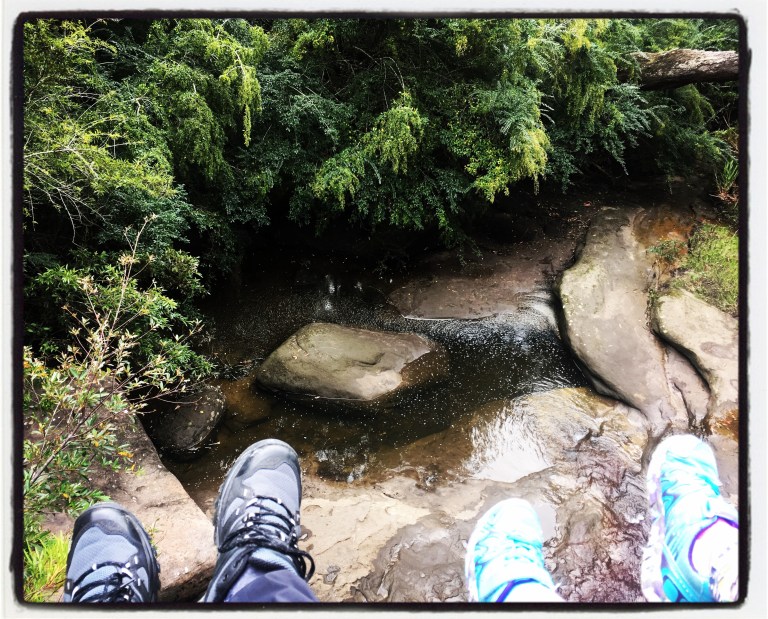 The track became very rough, part bush bash, and was very rocky. We were being extremely cautious regarding snakes as I had seen one the prior day, so when the grass to the sides of us became thick we stamped our feet to alert any slithery friends to our presence. We pushed on down until the sounds of distant traffic hushed and the trickle of running water took over.