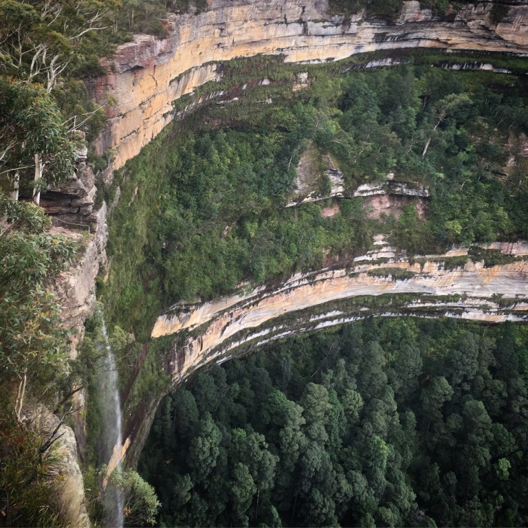 The walk carried on along the cliff top and offered views of waterfalls dropping to the base of the valley. I crossed one waterfall and you could see it just disappear as it reach the edge. Climbing up to another lookout I pass a about a dozen or more elderly people heading down. One of them say me panting and said “I’m thinking this is easy but I’ve gotta come back up yet.” To which I replied cheekily “yeah they’re two ways these things”. She chuckled. A bit later I heard someone else shout to them “it’s not worth it!” Very funny. I hope I’m still doing this at that age.