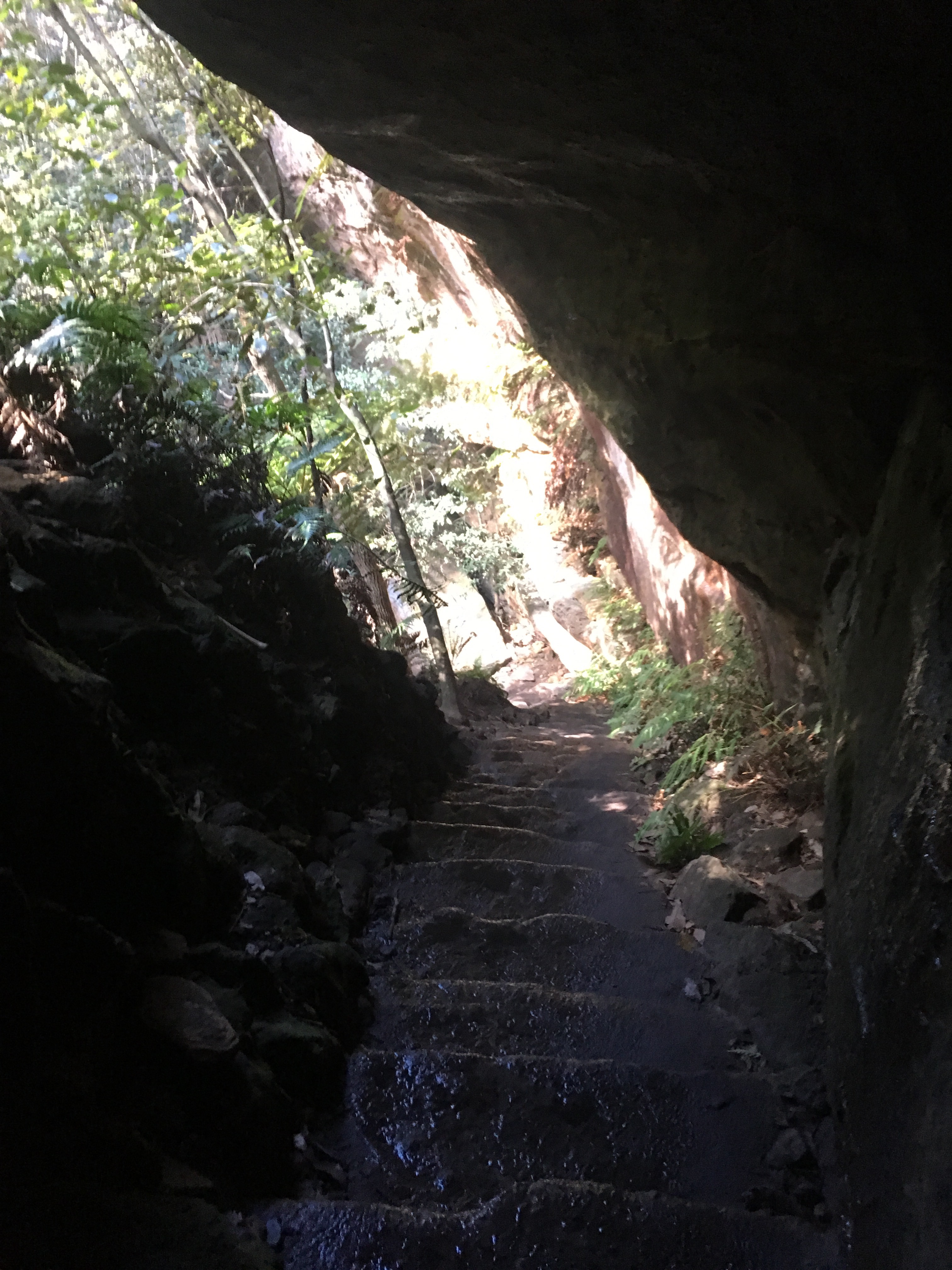 The walk carried on along the cliff top and offered views of waterfalls dropping to the base of the valley. I crossed one waterfall and you could see it just disappear as it reach the edge. Climbing up to another lookout I pass a about a dozen or more elderly people heading down. One of them say me panting and said “I’m thinking this is easy but I’ve gotta come back up yet.” To which I replied cheekily “yeah they’re two ways these things”. She chuckled. A bit later I heard someone else shout to them “it’s not worth it!” Very funny. I hope I’m still doing this at that age.