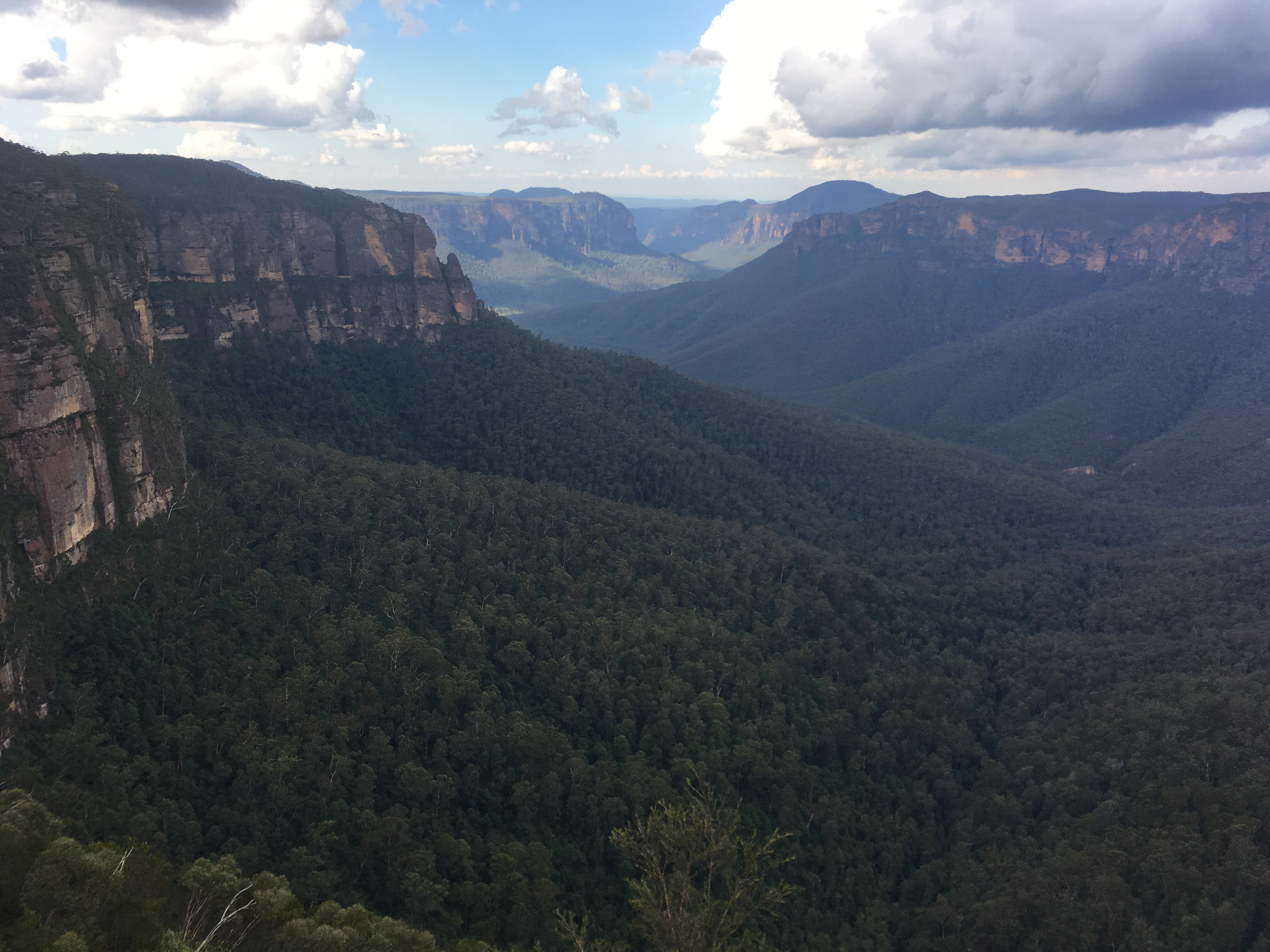 I began the climb out, and was shortly overtaken by some six year olds. It was a tough climb! Where do they actually get the energy? At the top I climbed the last few hundred meters to Evans lookout (I sat down a bit on the way).