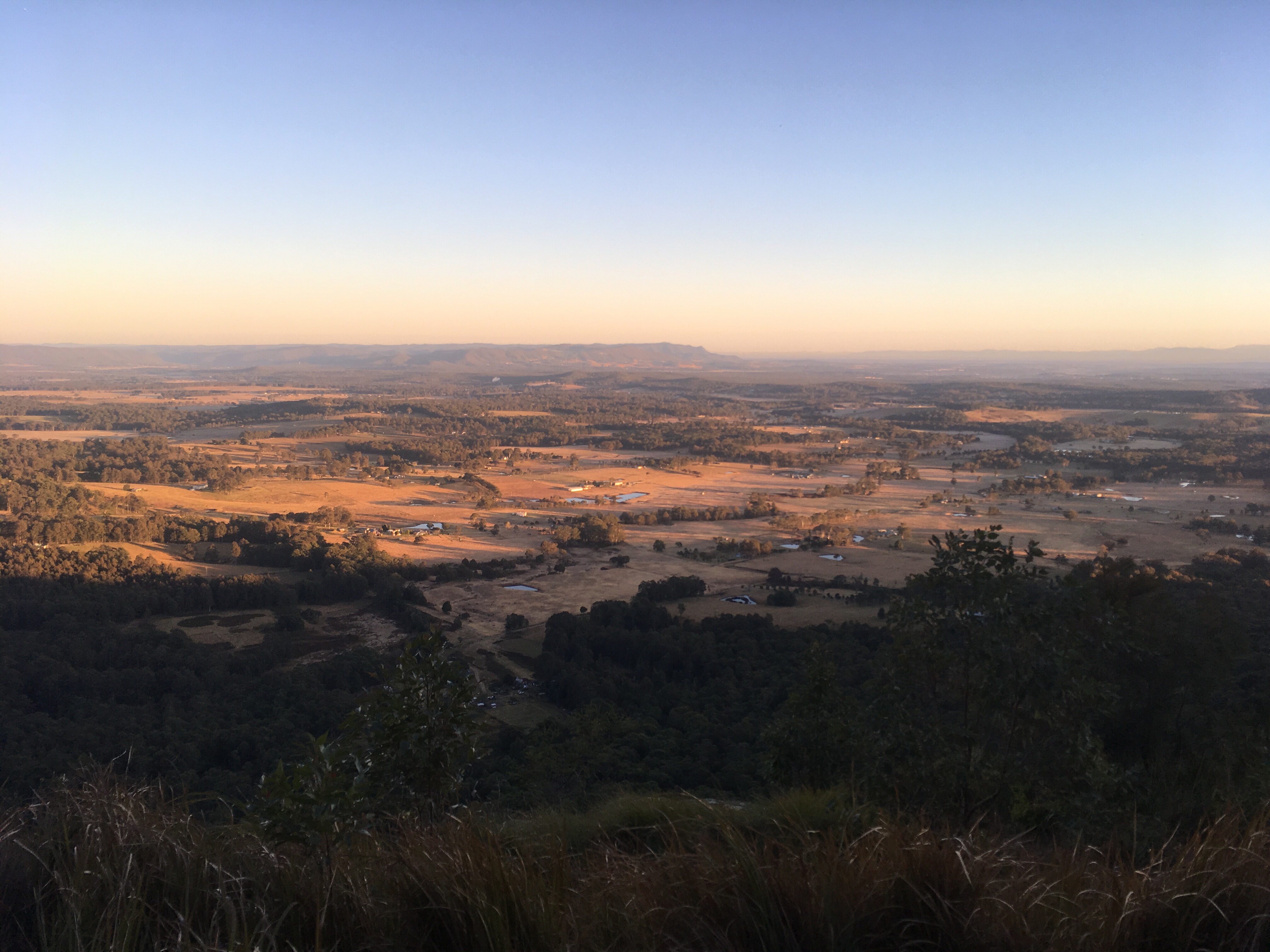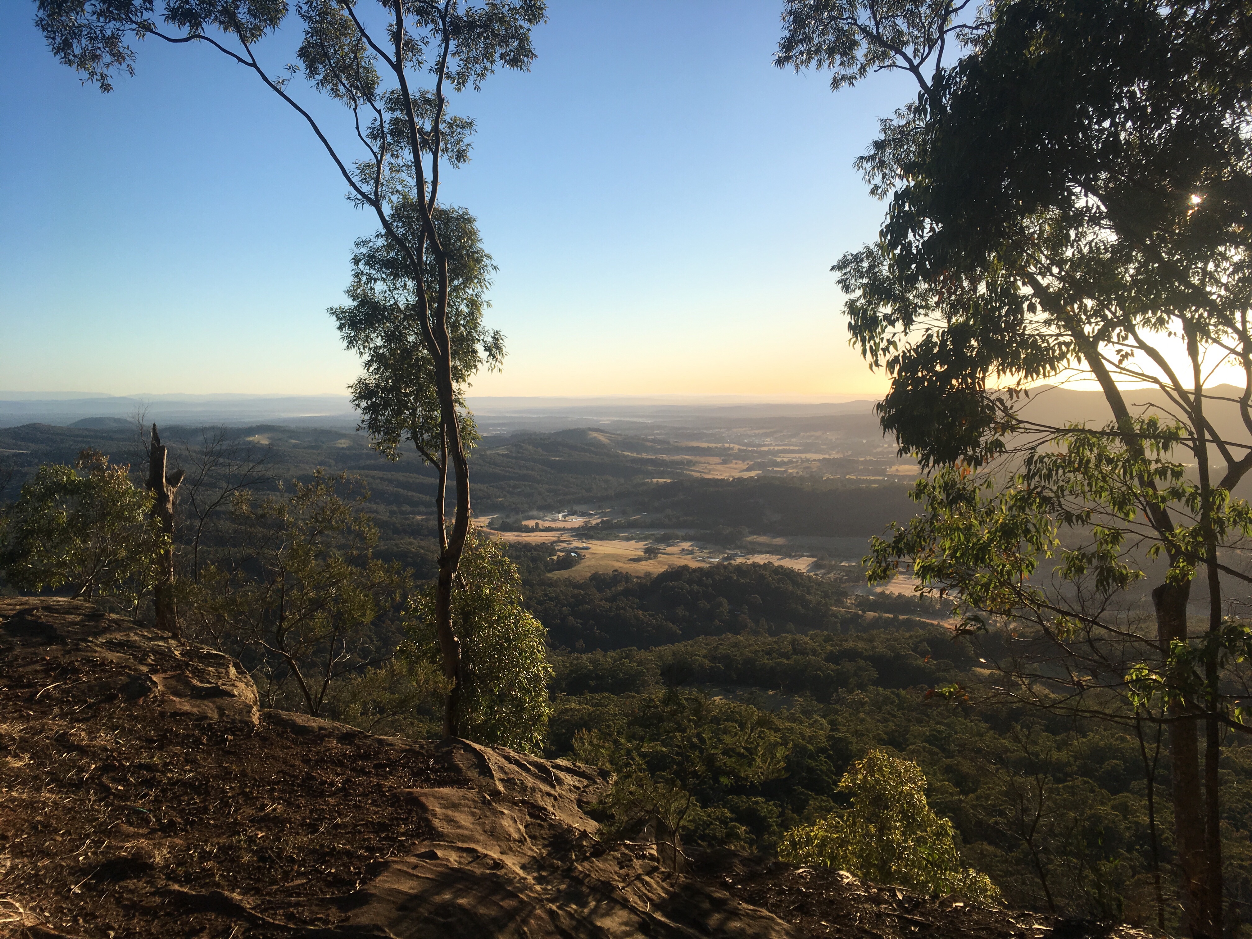 I woke up just before dawn and had Ryvita and cream cheese for breakfast before packing up to leave. There were toilets only 1.6km away and I was in need! The walking was fairly flat and easy and I was soon at Hunter lookout relieving myself! The toilets were really clean, spider-free and had loo roll too. Oh and there was a lookout!