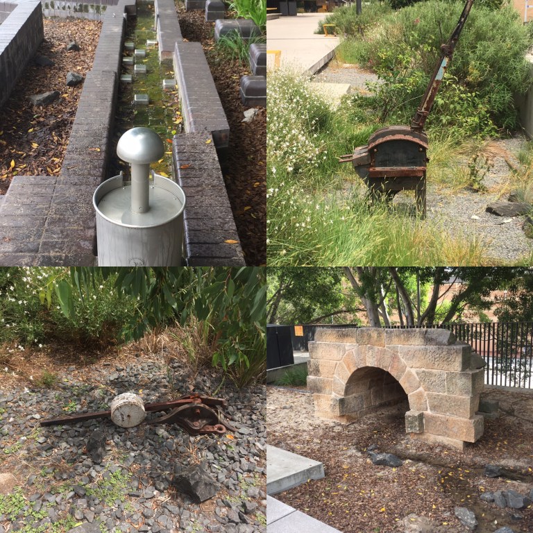 There is a nice little walk in the City of Sydney suitable for children. It follows the path of an old goods line that once connected Sydney train yard with Darling Harbour and the Sydney to Parramatta train line. Today, “The Goods Line” features relics of the old railway including old tracks and switches and culverts. There is a water play area that children can play on that is constructed from old railway building bricks. There is also street furniture in the form of table tennis tables and some gym equipment.