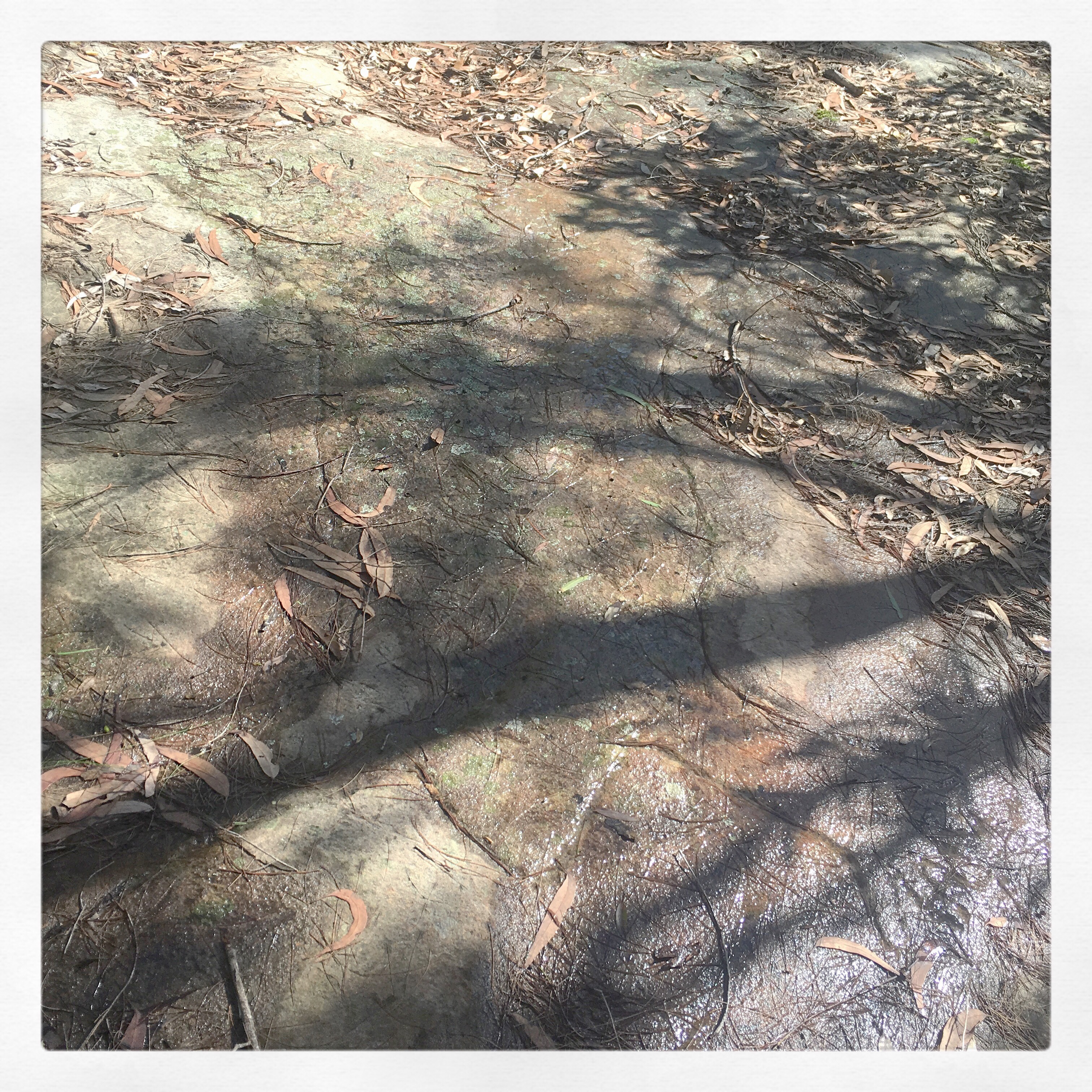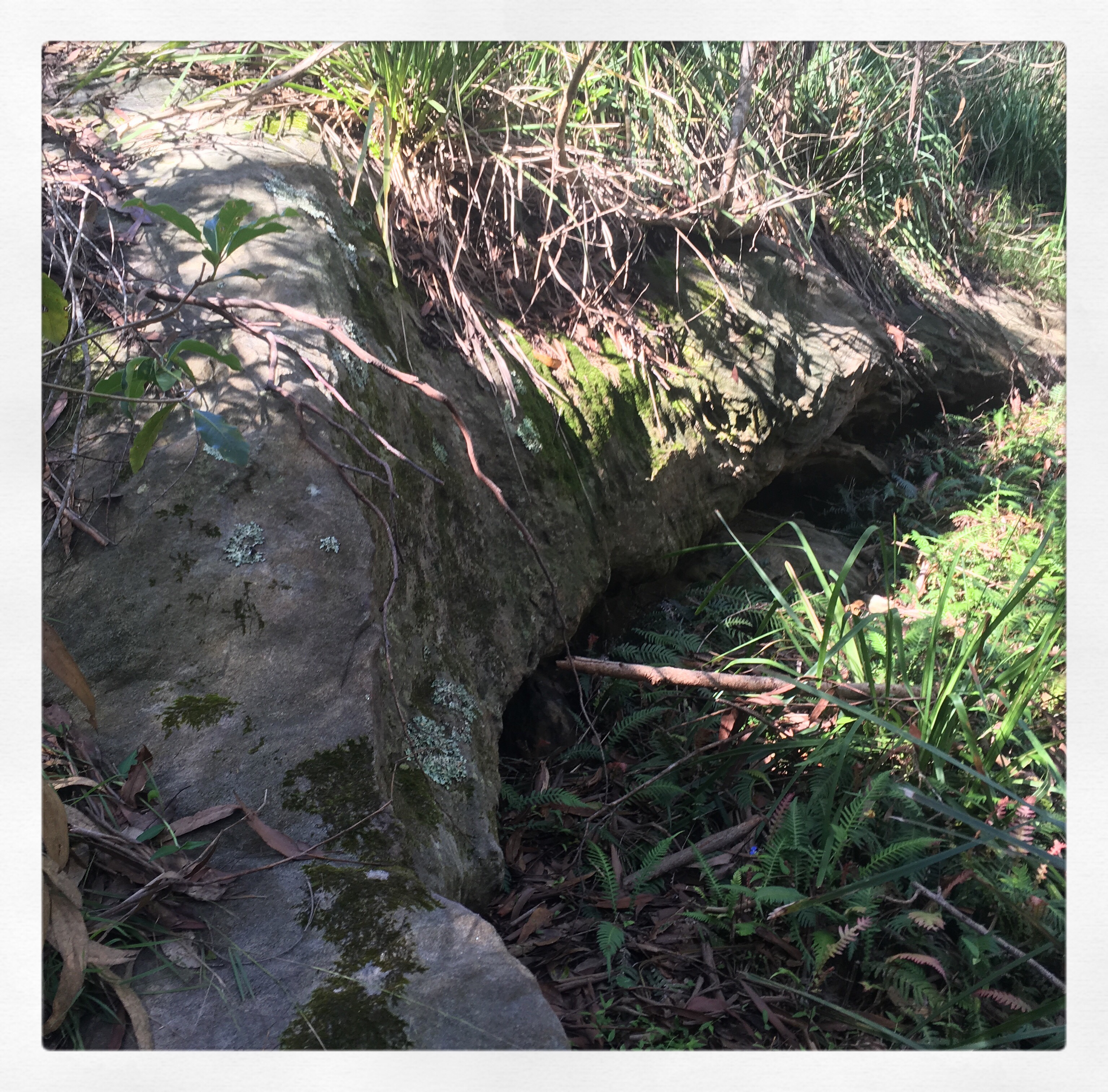 I did a bit of bush bashing and followed some footpads to a flat sloping Rock. I almost walked past it as it was so indistinct, but after looking at it from a certain angle all the shadows lined up to highlight its shape. I was thrilled! Pictures below. I don’t know what it actually is- any thoughts? I’m thinking a blue tongue lizard… I say that as the area was guarded by the biggest blue tongue lizard I’ve ever seen! It could possibly be a frog? There were some water filled hollows in the rocks and small (dry) creeks where frogs may be found.