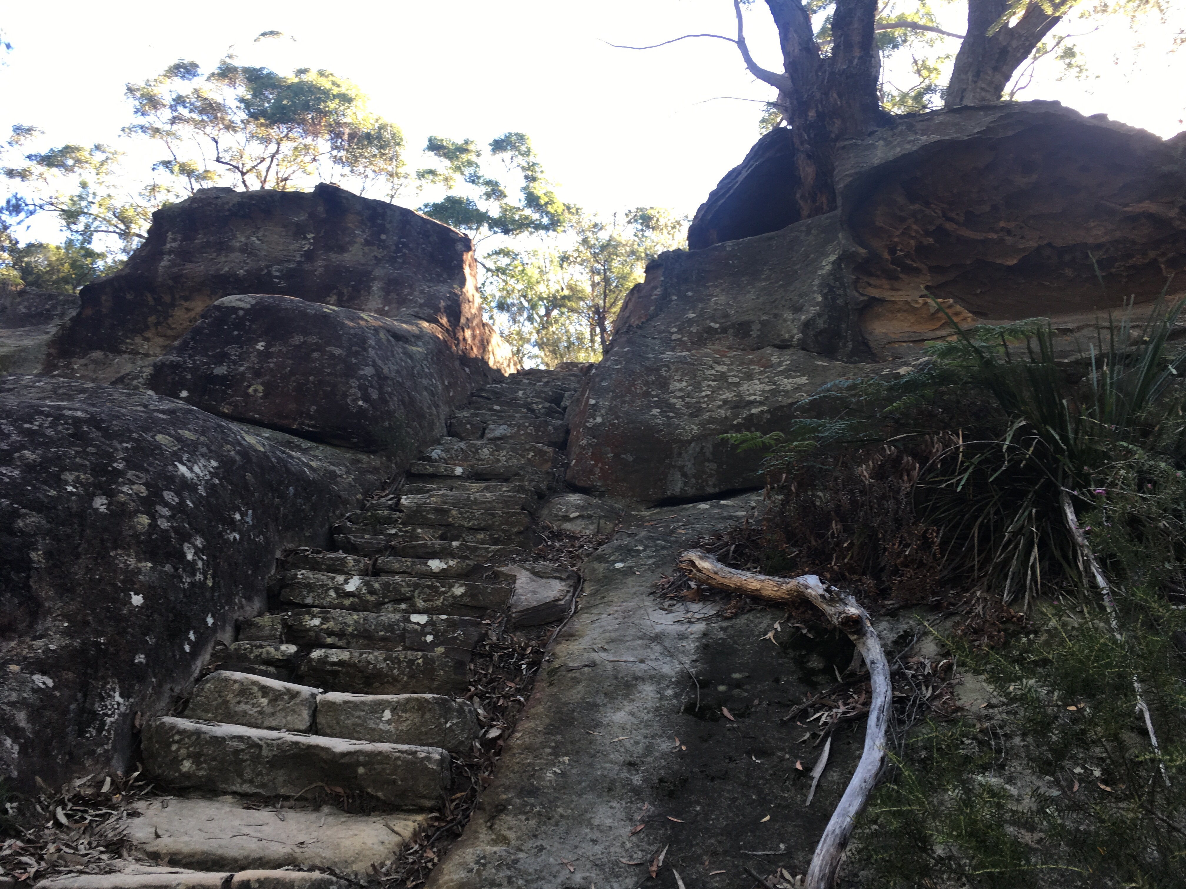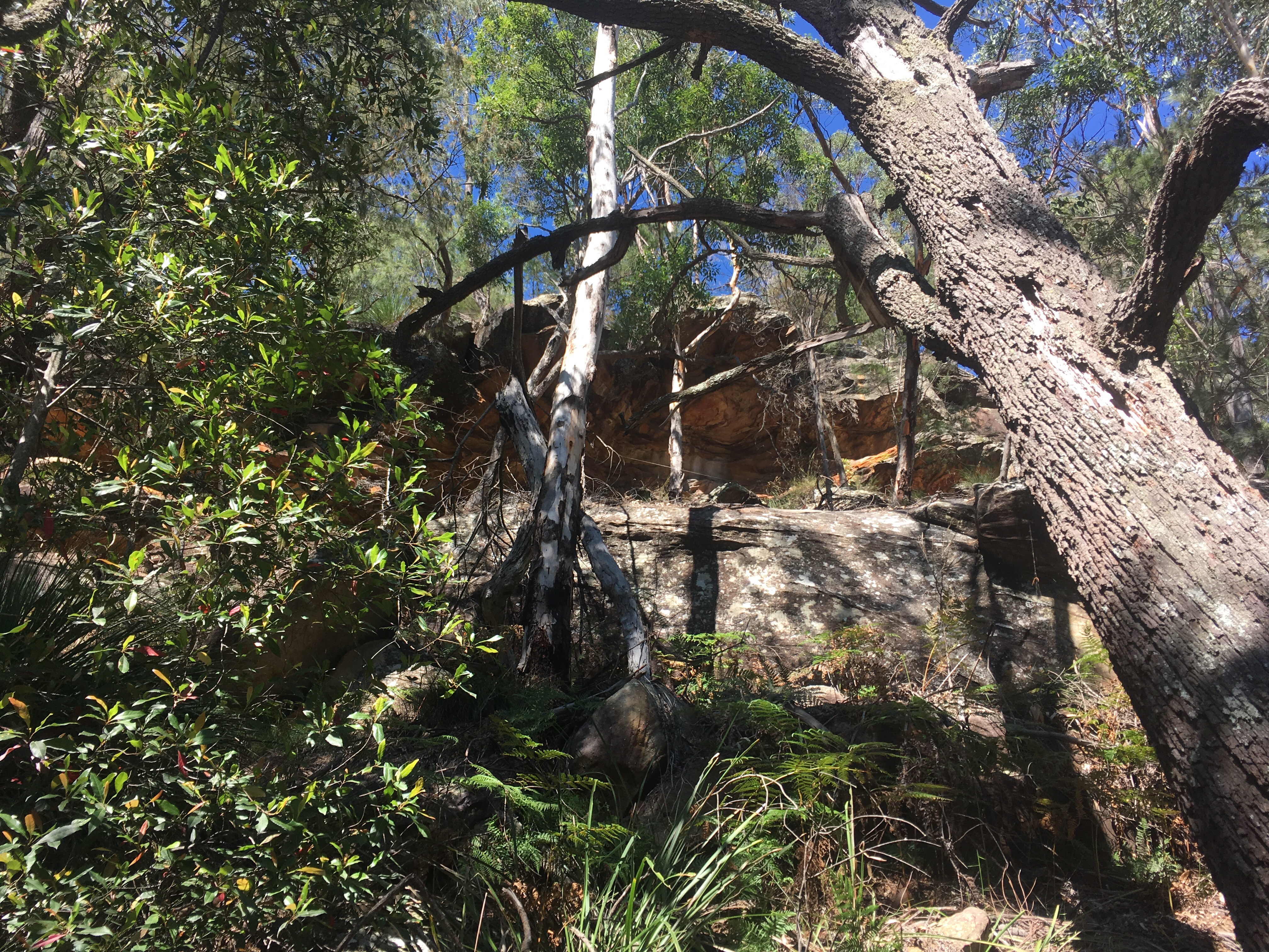 I decided to revisit the Berowra Track, which connects Berowra and Mt Kuringai via Cowan Creek and Apple Tree Bay. This time, I was on the lookout for some local heritage. Before the area became national park there was a boat shed at Waratah bay owned by Edward Windybank. He moved into the area with his family, after working nearby on the railway, and initially lived in a cave whilst the business was being set up and a house could be built. His family hired out boats, cottages and houseboats. In 1895 he constructed a track from Berowra station down to his boatshed that was good enough for horses and for people to walk. There was even a small bridge that was later washed away in a huge storm. (All of this information comes from Nathan Tilbury’s self published book “Man Made The City But God Made The Bush: A Detailed History of Early Berowra)