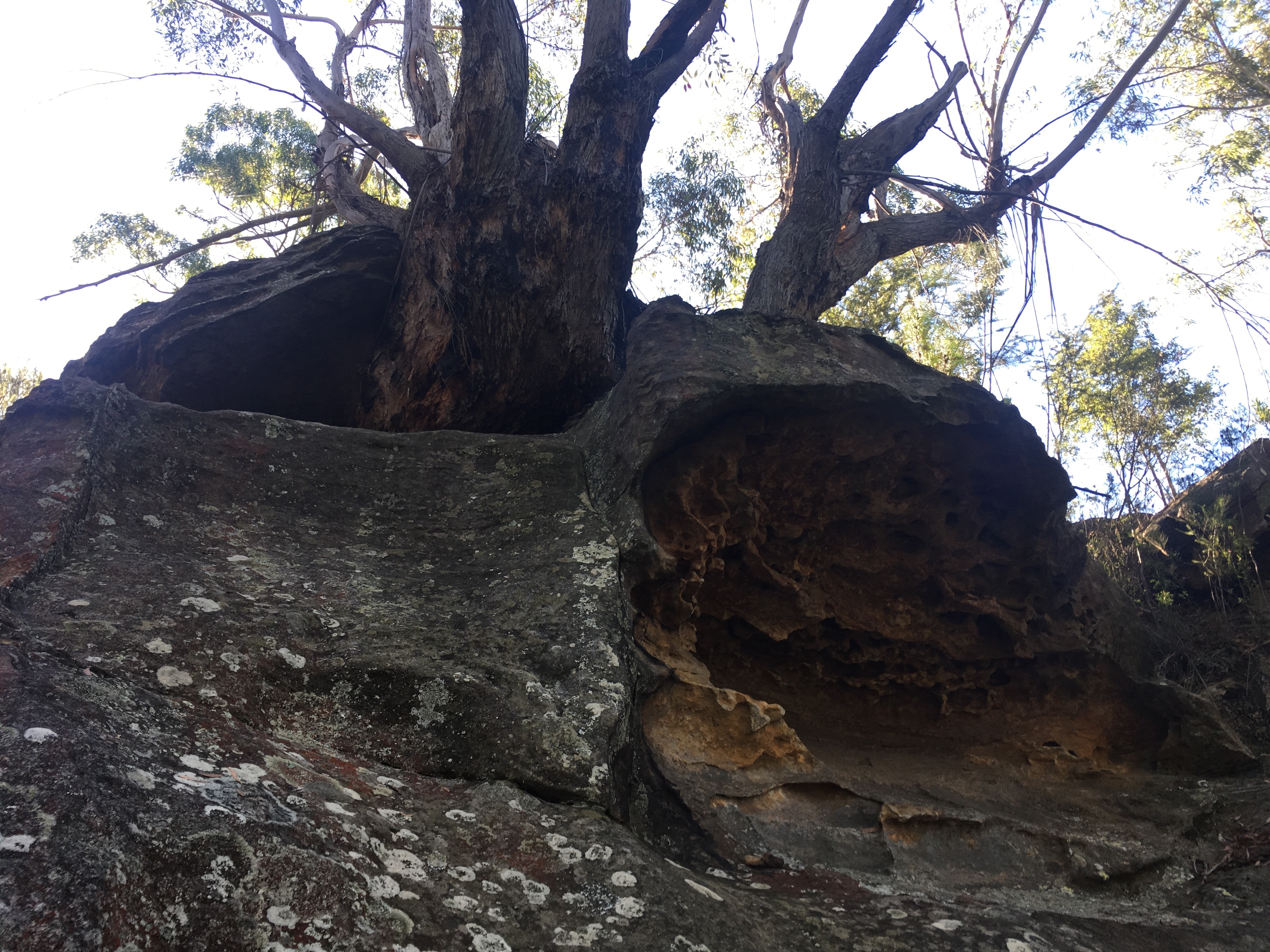 I finally made it to Apple Tree Bay but the kiosk was closed. No ice cream for me. The public toilets were open though so it wasn’t a wasted trip. I headed back to meet the turn off to Mt Kuringai station. In a cave near the turnoff there was a faint engraving. I wondered if it was old or whether it was just the work of local kids. It had occurred to me that I had not seen any engravings even though there were plenty of shell middens on the track. There was lots in Berowra Creek, and some on the ridge opposite to where I was standing. I wondered if I simply hadn’t seen them or whether there was a reason they were not made in this particular area.