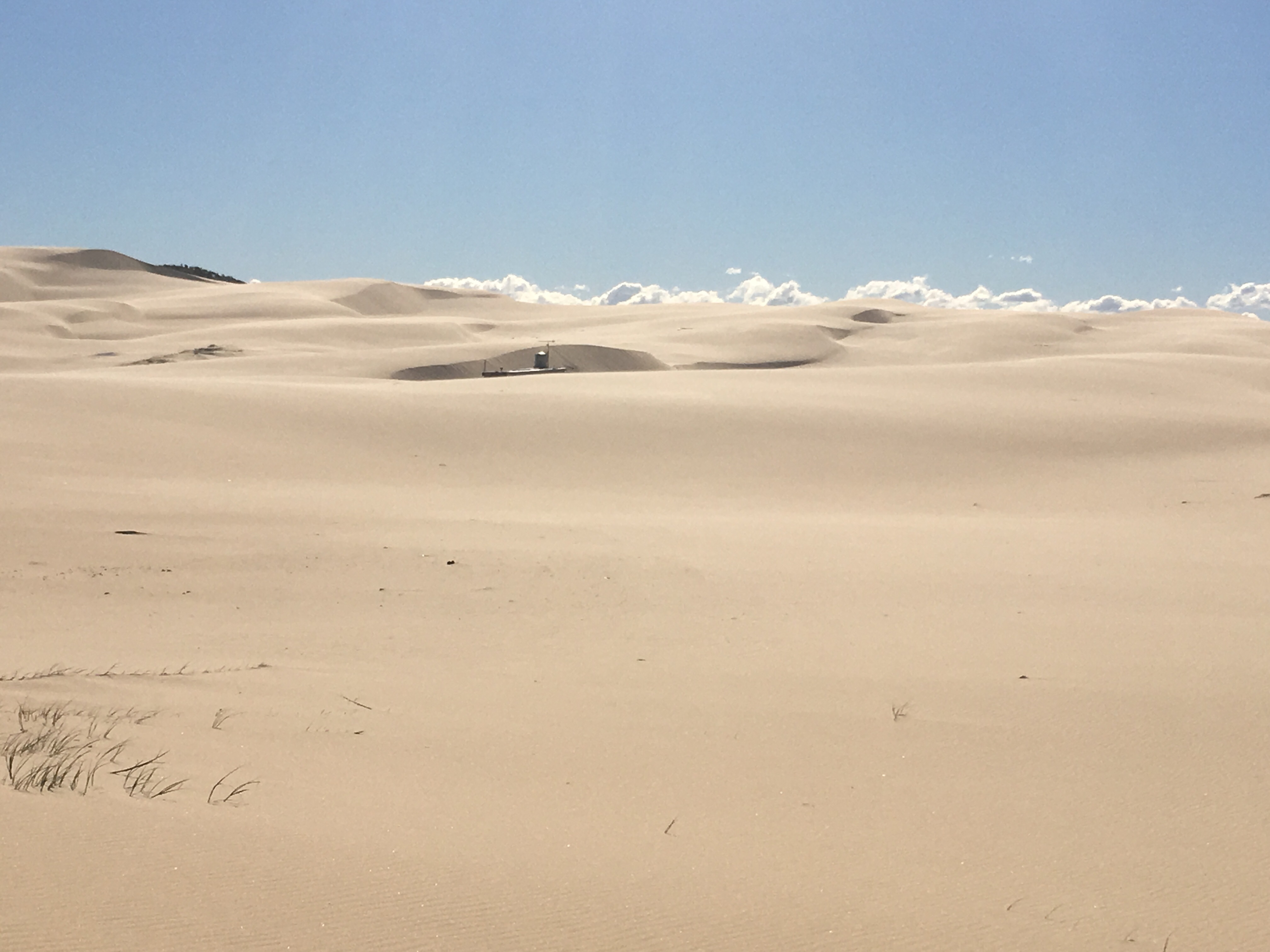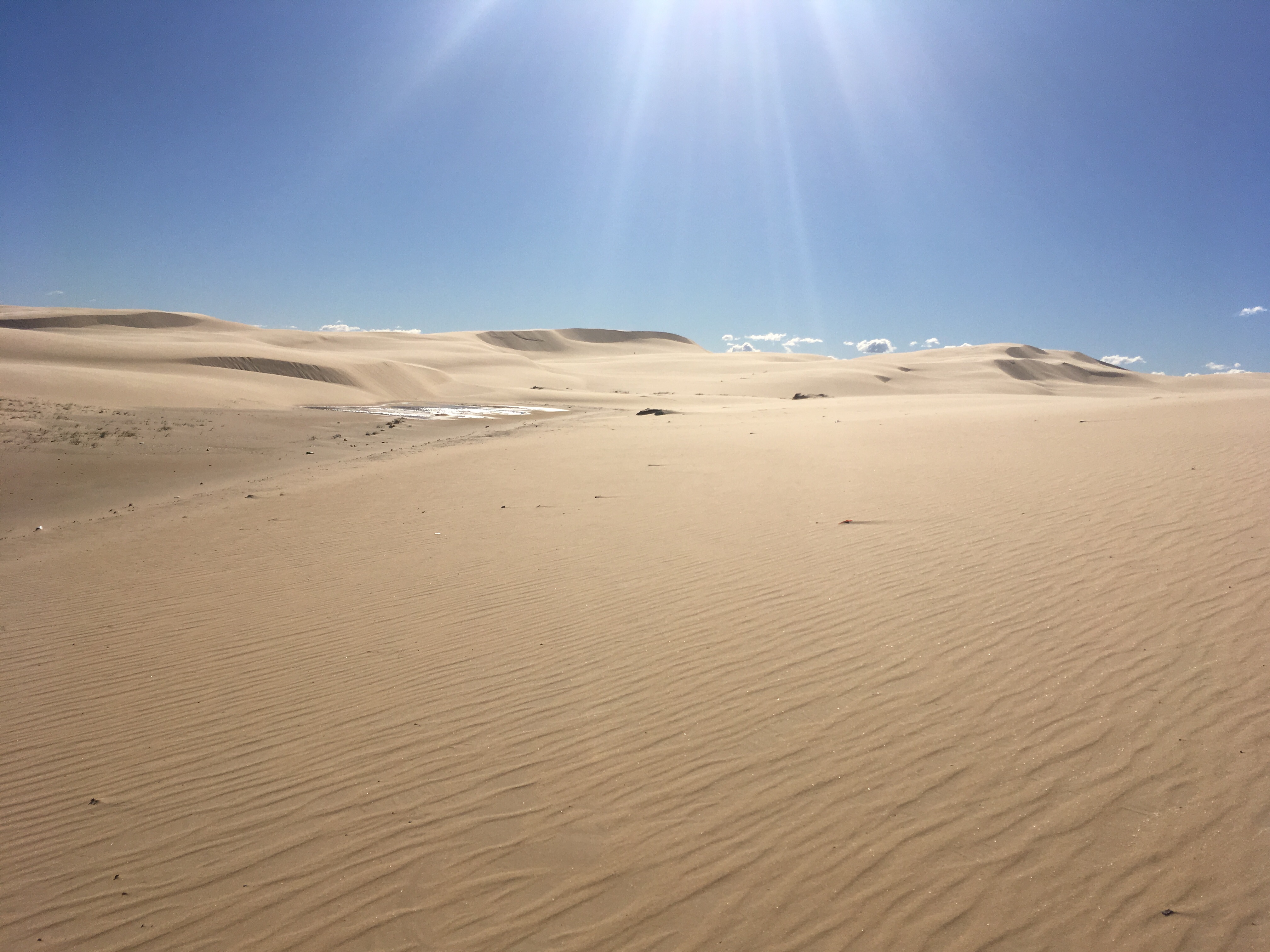 The wind was now fierce and the dunes had a lot of sand blowing off them. I remembered the scene from Mad Max Beyond Thunderdome where a kids was swallowed by the shifting sands. Another memory came from a movie I cannot remember of a horse being swallowed by the sands and I began to worry :). I did actually sink a little at one point….wait… where’s my horse?