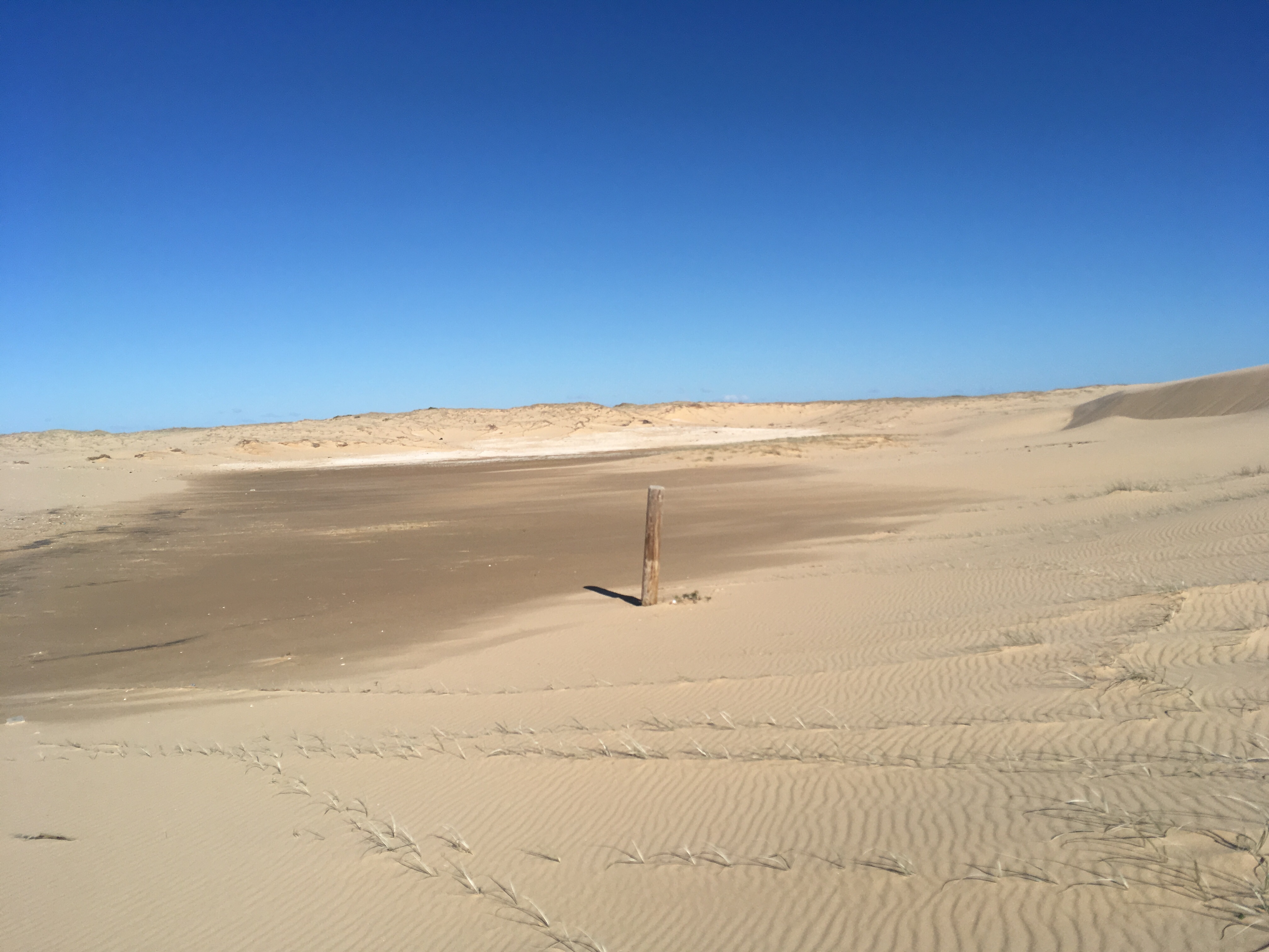 I resumed walking behind the frontal dunes and found the dunes were even larger and the soaks were all dried up.