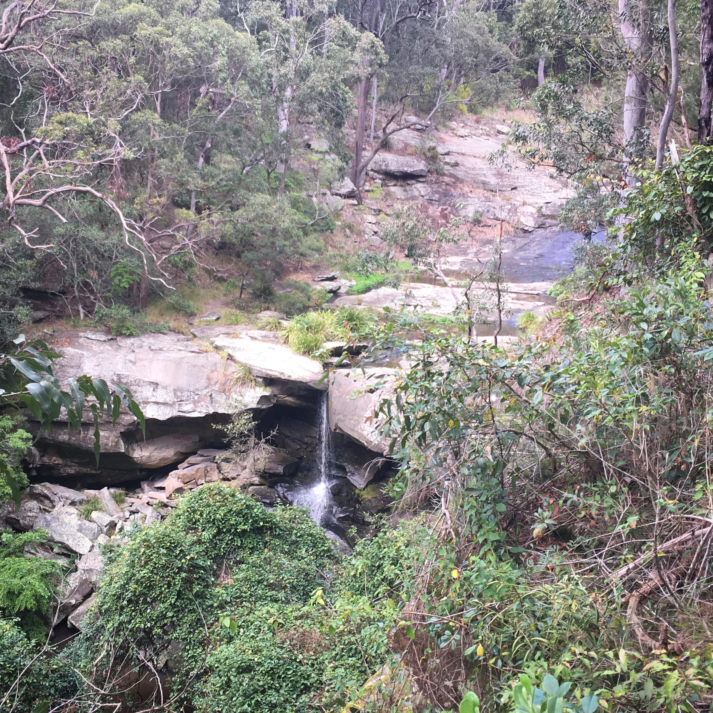 The trail flattened out and we crossed a creek to join up to the Yuelarbah track (Great North Walk) and noticed some people in the water further down. I didn’t pay much attention as my eyes were on my son as he crossed over the water. As we came around the other side I could see they were two scantily clad ladies being photographed in front of a small cascade. My son told me that they were acting like tigers in front of the waterfall. He was right, they were doing a lot of posing in their underwear. One of the other Dads said that this part of the hike was for us Dads. They stopped posing once they realised so many kids were around.