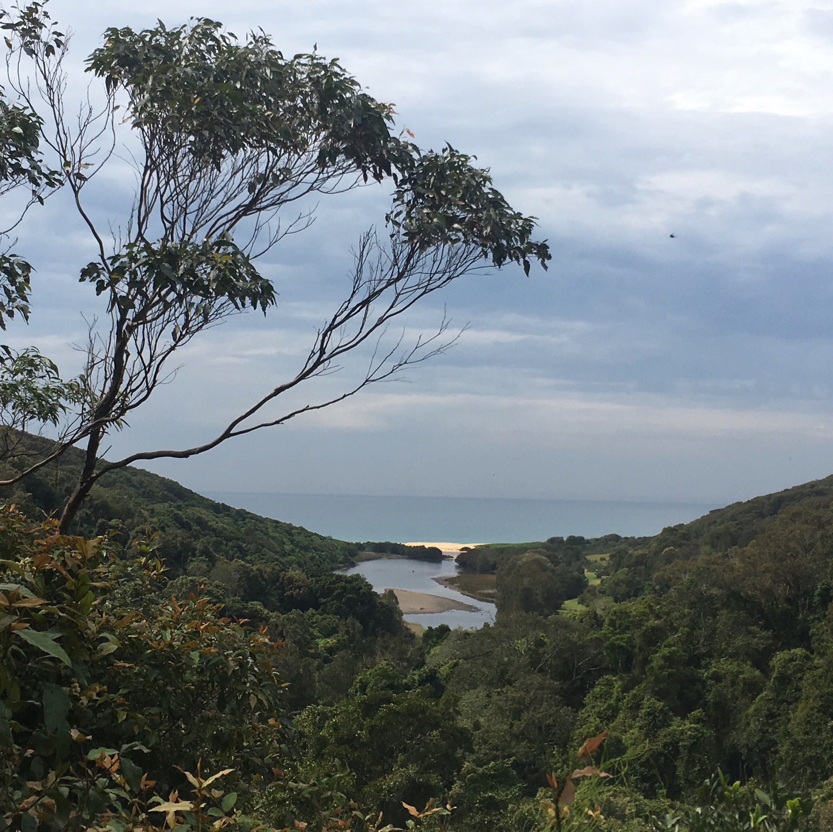 My son was hit by a branch so we had a moment together while he recovered then he bounded off to the front of the group again. I saw one of the old mine shafts, which I may not have recognised if I had not read the signage at the lookout. We passed a few runners and other hikers and could soon hear the waves crashing on to the beach. We popped out of the forest onto the sand. There was a coal seam in the cliffs next to the beach. The day before, when we had spent the afternoon at this beach, I had fascinated my son by telling him that the large black pebbles he had collected were actually lumps of coal that had likely come from that seam. He went around telling all the other kids what he had found. We had tried to dig a channel connecting the lagoon to the ocean and today we could see that some other kids were trying the same thing. It’s a wonder that there wasn’t a permanent channel there with all that digging!