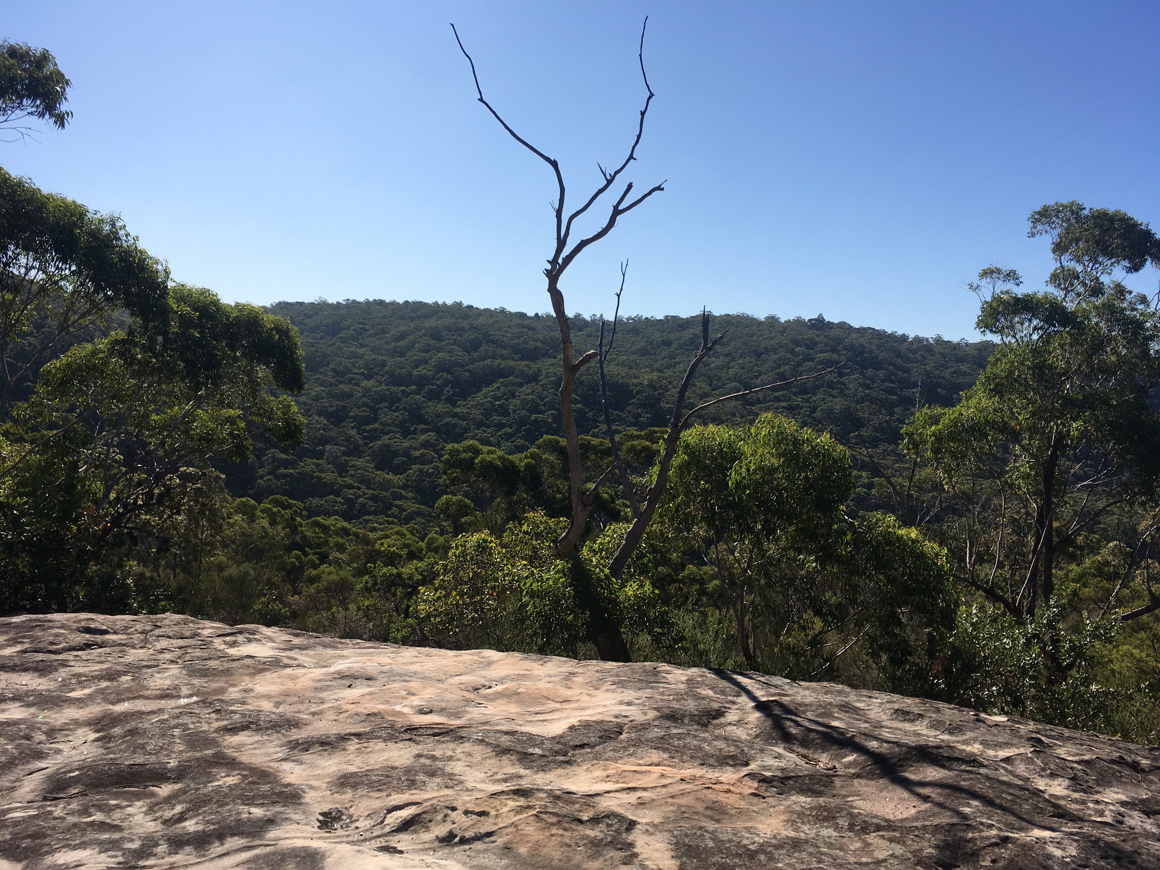I was a little disappointed! I’d seen rock platforms like this one many times and I couldn’t see how this one was more worthy of mention than the others. I noticed a gap in the trees ahead and sure enough the trail continued. I came out on a huge exposed rock face with views up the valley. I began exploring and found there were lots of little trails to other exposed rock outcrops. I spent a bit of time exploring and just generally enjoyed myself.