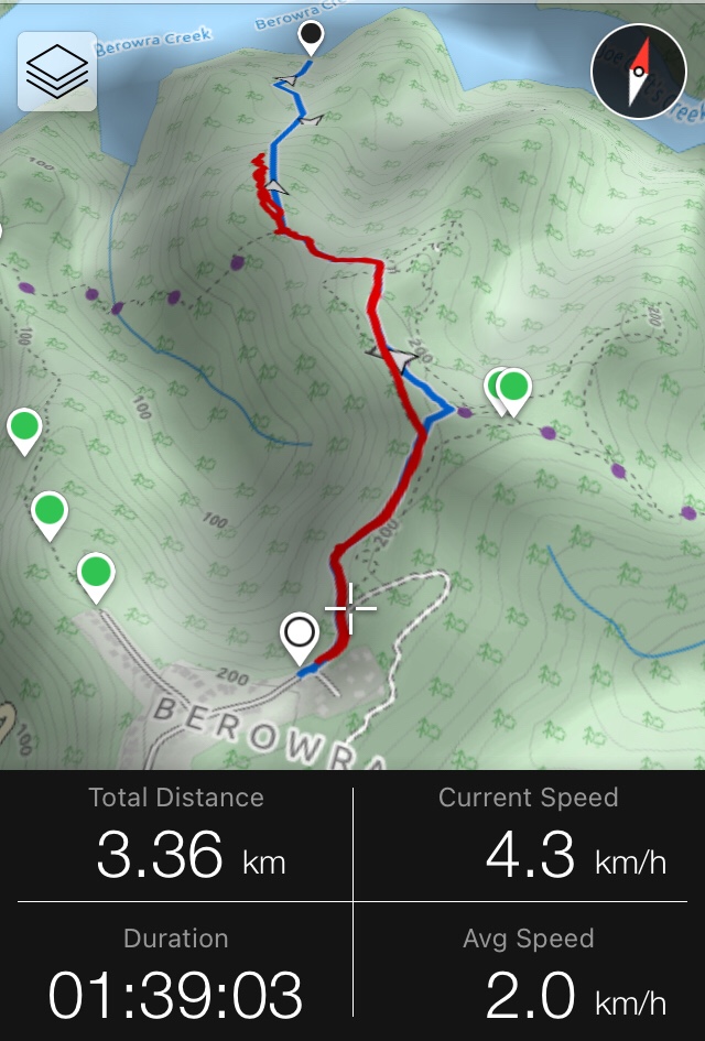 I joined The Great North Walk via Turner Rd firetrail in Berowra then walked until I reach the point I’d marked on the map to go off track. It was quite overgrown so I walked back and forth a bit trying to find the best route before finally taking the plunge.