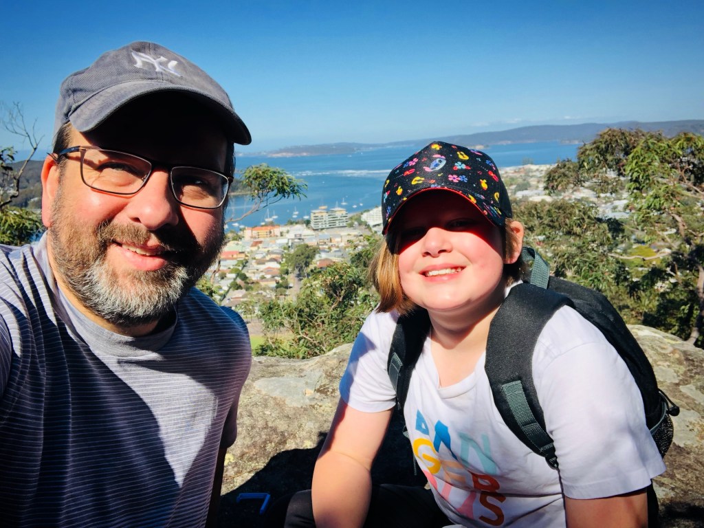 The view was fantastic! We could see Lion island, Umina beach and Ettalong Beach. It was so clear! My daughter noted that the buildings below looked like one of those sun city type games and she felt she could just tap the screen and earn points! Tap that building- points! Taps that spot- build a hotel! We had lunch then made our way down. Our jogger friend passed us for the third time and I was a little jealous of her!