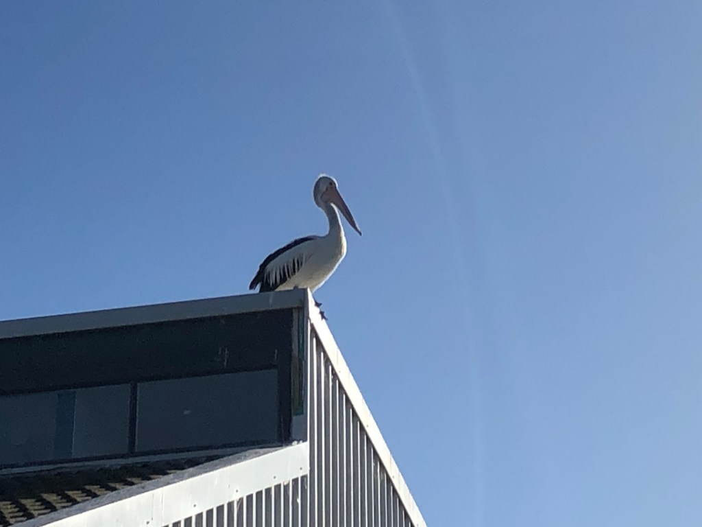 We started out from the shops and first passed a chip shop with a pelican on its roof. Funny thing is that a few years ago we visited this spot and there was a pelican in the exact same spot. Guess it was just a good place to sit! We walked along the sand and found one of those weird jelly blobs things (salps?). One of the locals pointed to the water and said that if we looked we might see some sea slugs. So that became a bit of a mission though we had no idea what they actually looked like! We guessed it would be a bit like a sea cucumber. We didn’t find one though.