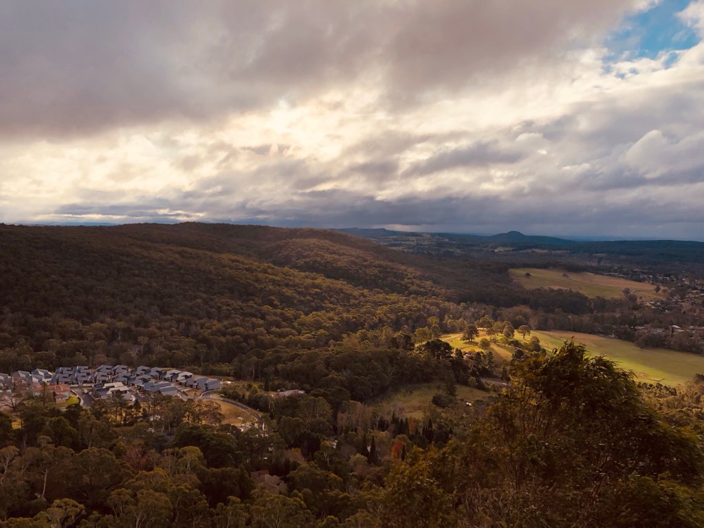 There were a lot of steps and I soon came to a sign pointing out a quarry from where the steps were obtained. I climbed and climbed, stopping frequently as I was getting proper tired now. I reach the top of the climb and checked out Bowral lookout. That was nice and although the weather had turned gloomy it was still a lovely view.