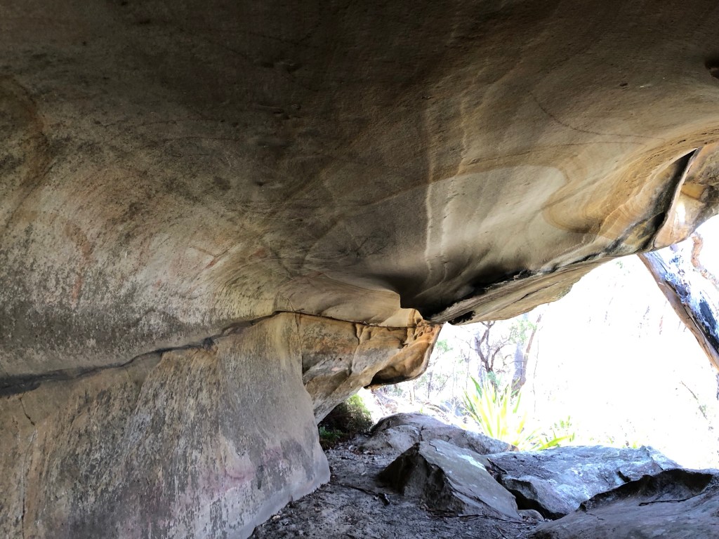 I imagined what it would’ve been like back in the day. What would this cave have been used for? I imagined parents teaching their children how to recognise animals and how to hunt for the first time, perhaps. The cave itself, almost felt like it was a hide for hunting. You could hide down below the rock seat and watch the bushland ahead of you, and maybe there was hunting done directly on that spot, who knows.