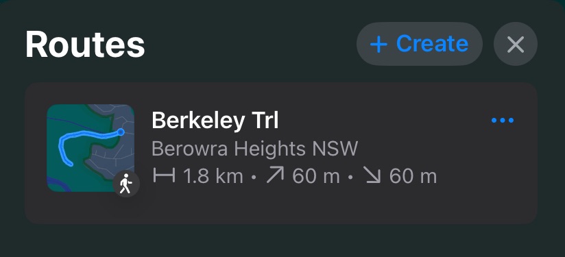 I had a nice little surprise when updating my Apple iPhone this morning. The Apple Maps app has been updated and now allows you to create simple hiking routes! It even gives basic stats on elevation gain and loss as well as route length.