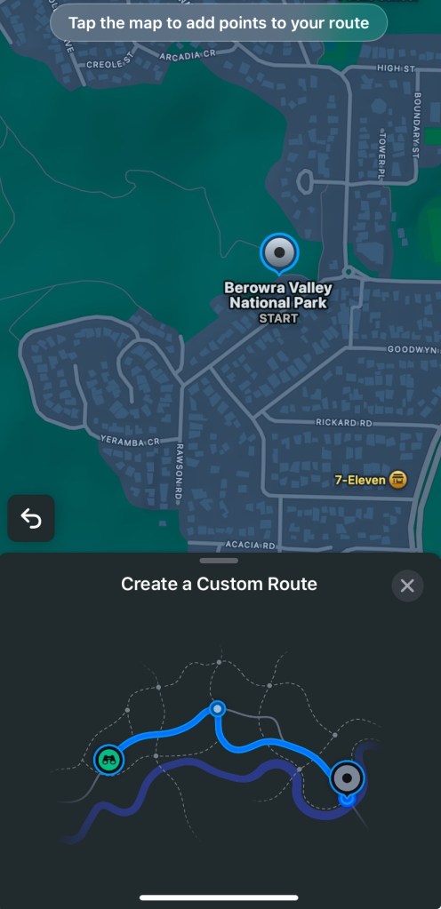 This is quite an interesting feature. Good for simple route planning along known tracks. It won’t let you plot a point outside of an existing track or trail so no bushbashing adventures can be planned. But if you just want to gauge how long and difficult a walk is then this could greatly assist. Enjoy!