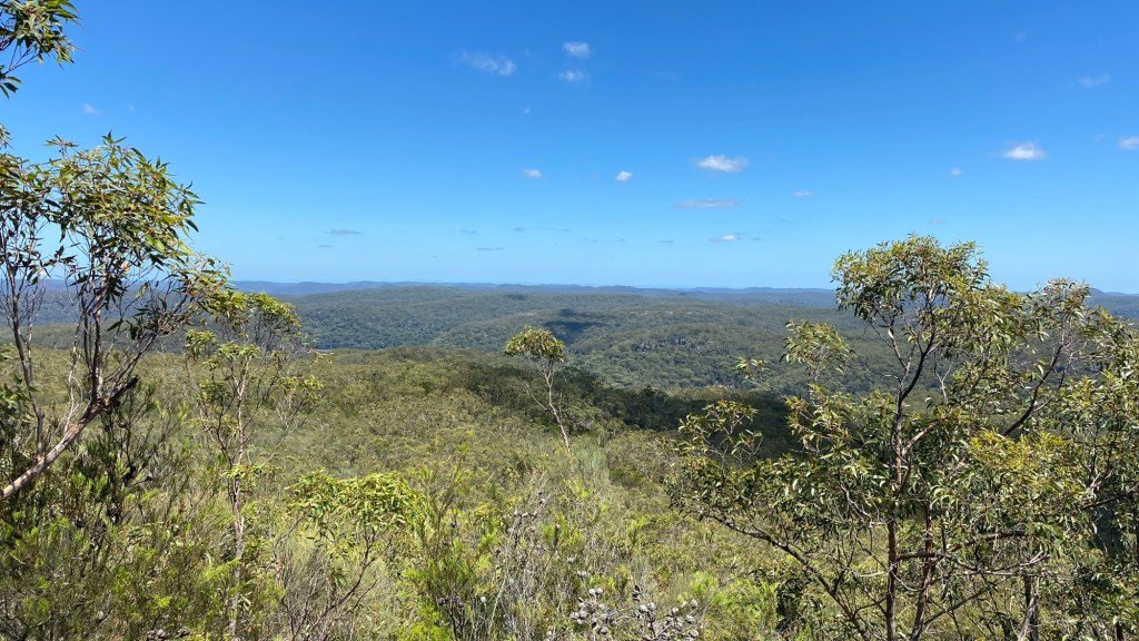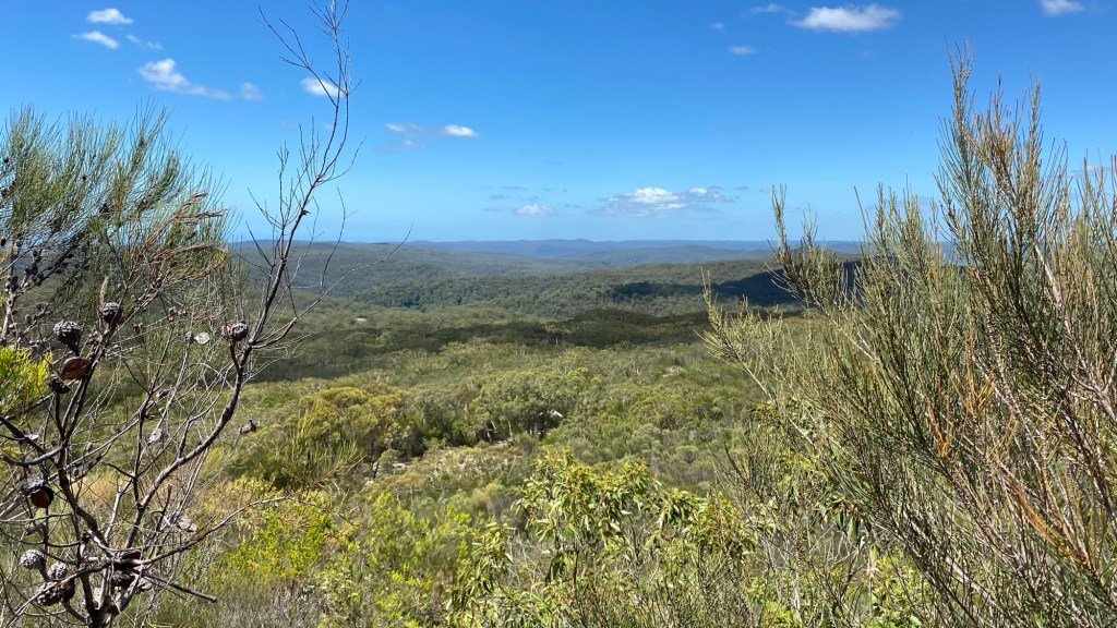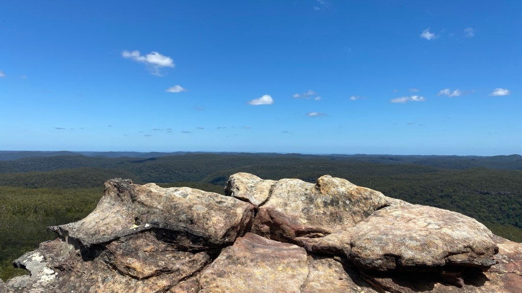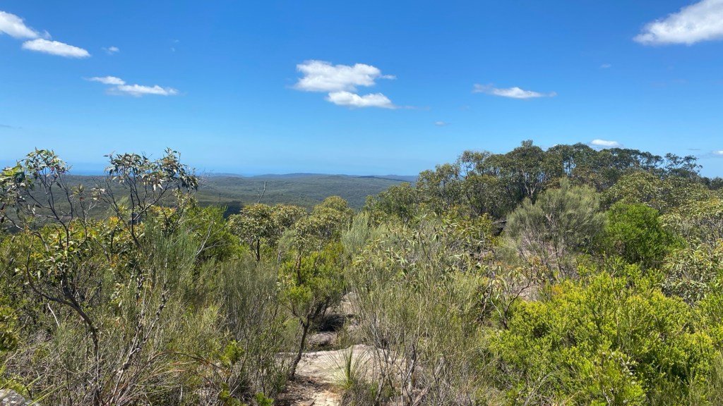 We reached the top and the view were spectacular! It looked like we were in the middle of nowhere, bushland as far as the eye could see. We explored a little and one side gave us a view of Woy Woy and Umina beach I think.